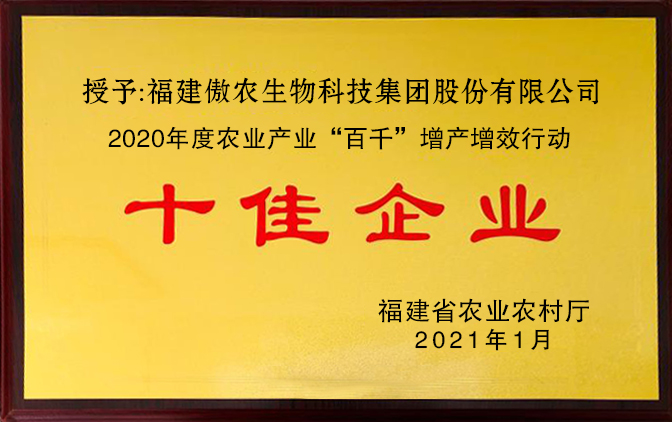 日前,福建省农业农村厅公布了2020年度农业产业“百千”增产增效行动“十佳”企业名单,福建尊龙凯时生物科技集团股份有限公司名列其中。